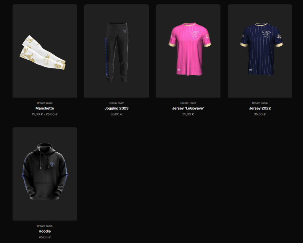 Consultez notre boutique via notre partenaire LMN8 à cette adresse pour vous équiper avec nos maillots, sleeves, jogging ou hoodies aux couleurs de notre équipe !